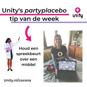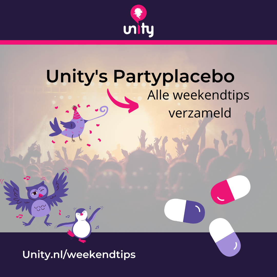 Zo begonnen we op vrijdag 20 maart onze eerste versie van Unity’s partyplacebo. Want normaal gesproken houden wij van feestjes. En van heel hard dansen. Tips om je weekend mee te vullen waren erg welkom, en voor de fanatieke ravers zelfs broodnodig.